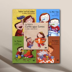Portades d'Els llibres de Marc i Andrea en gaèlic, publicats per Leahbar Breac.